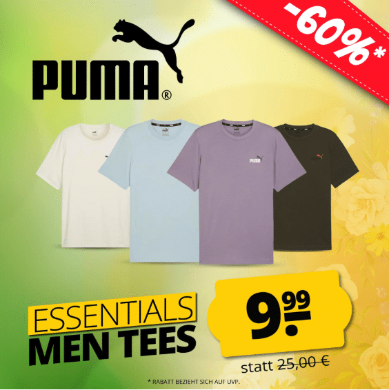 🐆 PUMA ESS +2 Color Logo Herren T-Shirt (4 Farben) für 9,99€ (+ Versand)
