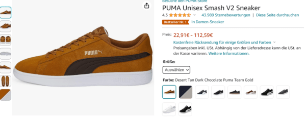 Seid ihr auf der Suche nach neuen Sneakern, die sich sowohl durch Qualität als auch durch einen fairen Preis auszeichnen? Dann könnten die PUMA Unisex Smash V2 Sneaker in grau ab 17,85€, per Prime Versand, interessant für euch sein. Der Preis variiert je nach Größe, am günstigsten sind einige Damengrößen, gefolgt von einigen Herrengrößen.