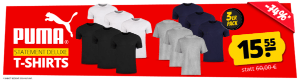 - PUMA Statement Deluxe Herren T-Shirt – 3er-Pack für 15,55€