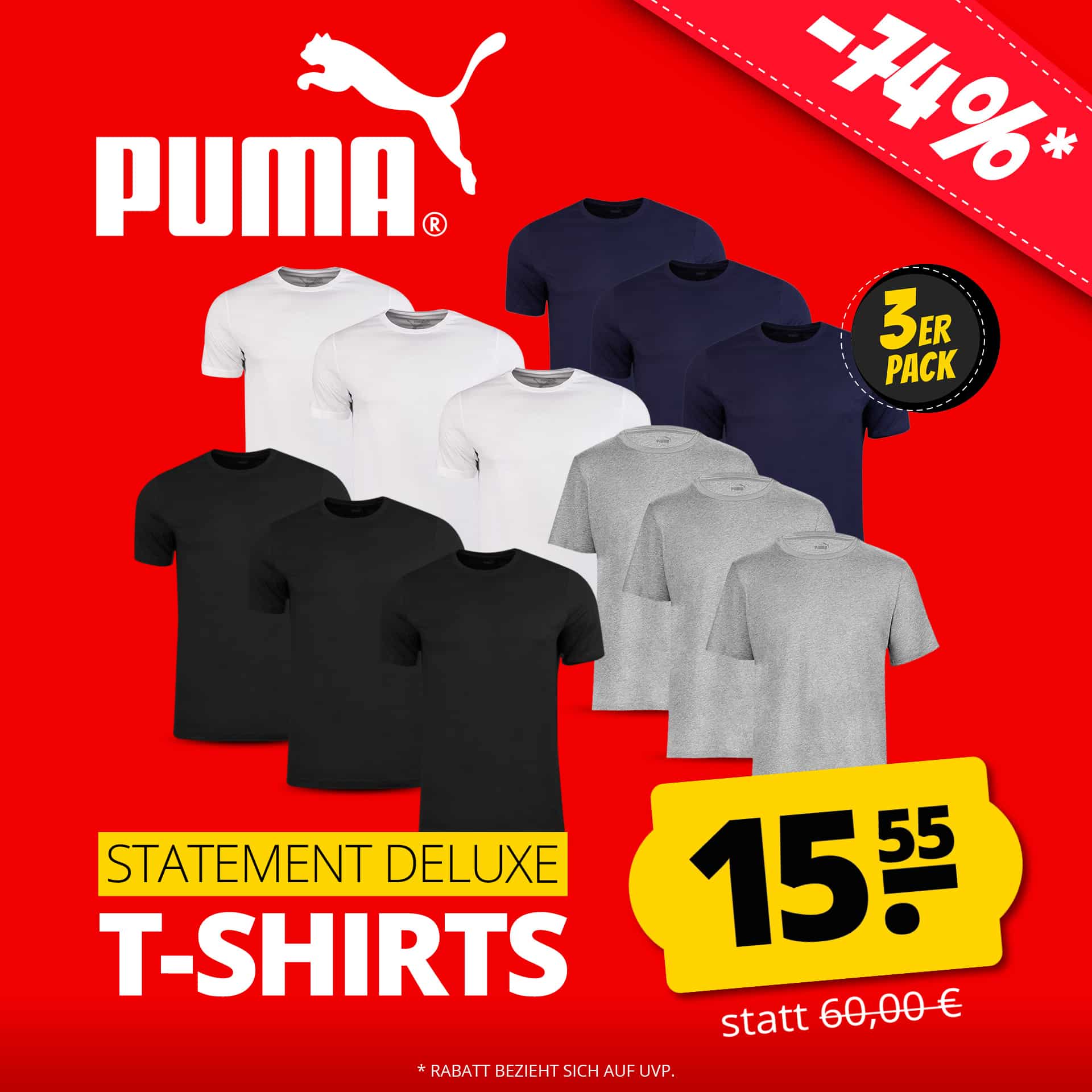 3er Pack PUMA Statement Deluxe Herren T-Shirts (4 Farben zur Auswahl) 👕 für 15,55€ (+ Versand)