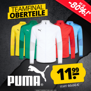 Ein kühler Herbstmorgen und das Training steht an, habt ihr schon das passende Outfit? Mit dem PUMA teamFINAL Herren Sweatshirt seid ihr für die kühlen Monate gewappnet. Für 16,94€ inkl. Versand könnt ihr euch dieses Teil bei SportSpar in verschiedenen Farben sichern.