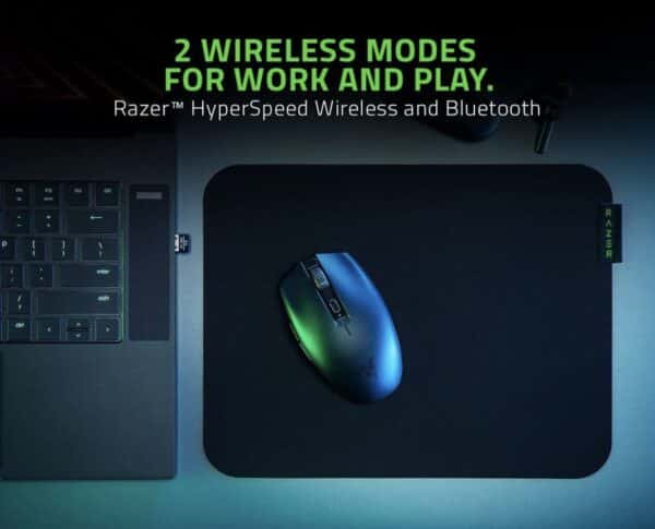 Zwei kabellose Verbindungsmodi stehen zur Auswahl: Razer HyperSpeed Wireless für ein schnelles, fast verzögerungsfreies Spielerlebnis und Bluetooth für eine verlängerte Batterielaufzeit, die besonders bei der Arbeit von Vorteil ist.