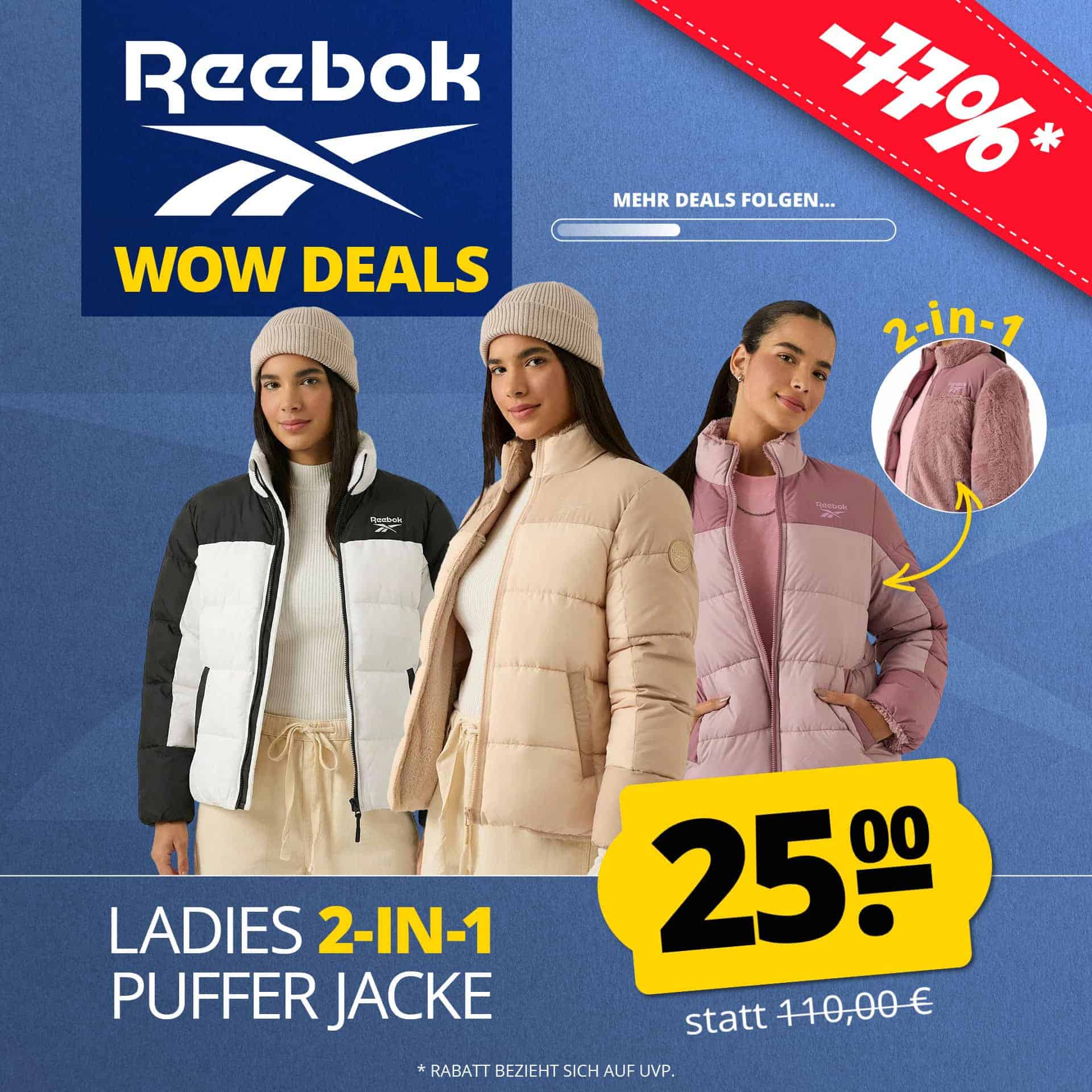- Reebok Pufferjacke für 25€ + 4,95€ Versand statt 55€