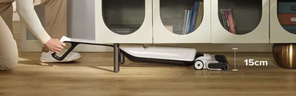 Der Roborock Flexi Lite fällt vor allem durch sein FlatReach-Design auf, das es euch ermöglicht, auch unter niedrigen Möbeln gründlich zu reinigen. Diese Flexibilität ist besonders praktisch, wenn ihr viel Mobiliar habt und Wert auf Sauberkeit auch in schwer zugänglichen Bereichen legt. Mit einer Saugleistung von bis zu 17.000 Pa nimmt der Wischakkusauger sowohl nasse als auch trockene Verschmutzungen in einem Durchgang auf.