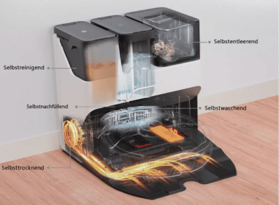 Für die eigentliche Reinigungsarbeit bringt der Roboter eine starke Saugleistung von 5500 Pa mit, die in Kombination mit dem innovativen VibraRise® Sonic Wischsystem auch hartnäckigsten Schmutz von euren Böden entfernt. Dieses System schrubbt die Böden mit hoher Frequenz und Druck, was gerade bei eingetrockneten Flecken einen Unterschied macht. Auch die Navigation des Roboters ist durch PreciSense®-LiDAR hochentwickelt, wodurch er schnell und exakt die Reinigungsrouten plant und detaillierte Karten von euren Räumlichkeiten erstellt.