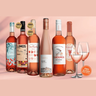 Wollt ihr mal wieder neuen Wein ausprobieren? Erfreut euch am Vinos Rosado Paket mit ausgewählten Kreationen aus Spanien und Portugal, die mit ihren fein abgestimmten Aromen begeistern. Neben sechs erstklassigen Flaschen Wein erhaltet ihr zudem ein edles 2er Set Gläser gratis dazu, um das Geschmackserlebnis zu vollenden!