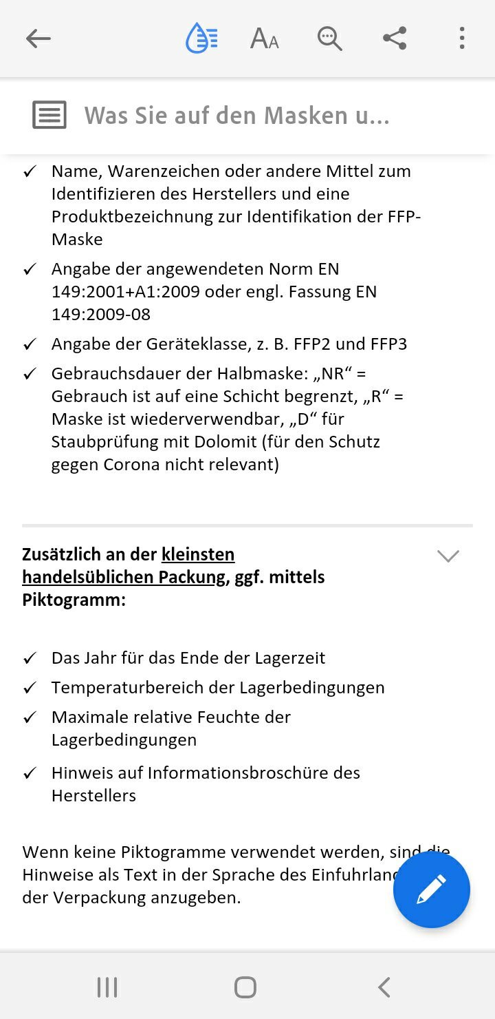 Der Mundschutz-Markt wird aktuell überschwemmt mit Angeboten. Um nicht auf Ware mit schlechter Qualität hereinzufallen lohnt sich ein Blick auf produktwarnungen.eu. Dort findet ihr die Liste der für CE-Zertifizierungen von FFP2 und FFP3 Atemschutzmasken zugelassenen Stellen in Europa. Diese Prüfstelle sollte auf eurer Maske vermerkt sein, andernfalls kann es sich evtl. um minderwertige Ware handeln. MyTopDank für den wichtigen Hinweis geht raus an @baerchen!