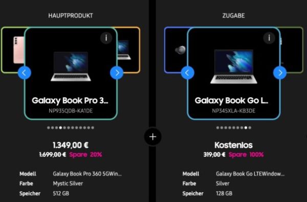 - Galaxy Book Pro 360 + Book Go für 1.299€ (statt 1.828€)
