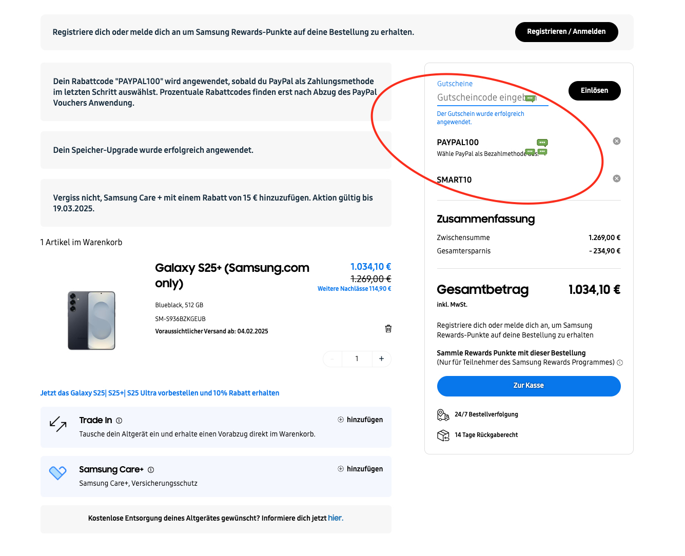 - Nutzt für alle Geräte unbedingt Zahlung per PayPal und diese beiden Gutscheincodes: