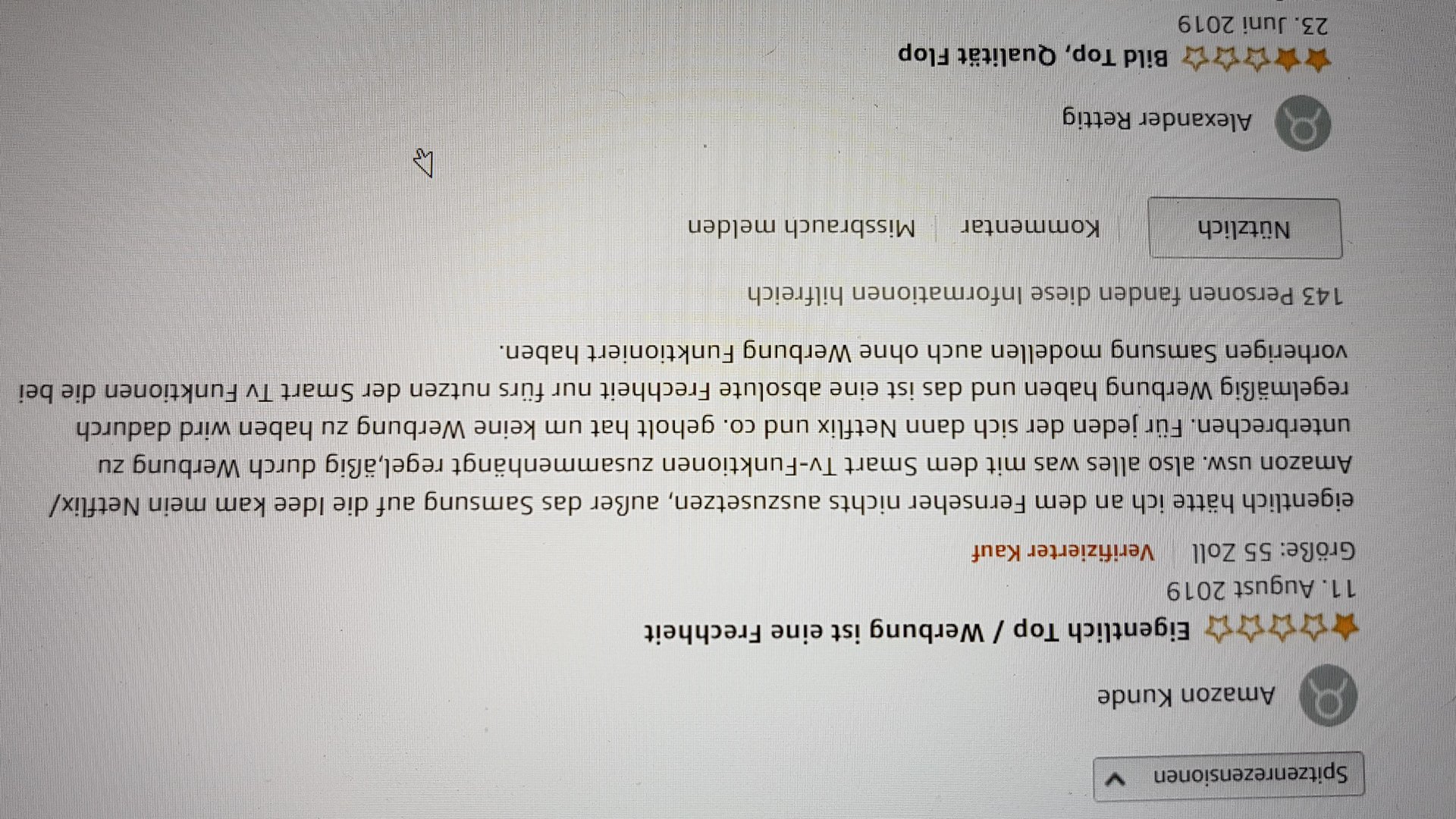 ginno (Gast) 30.11.2019, 13:48Also ich habe seit 3 monaten den 65qled und da kommt keine werbung auf netflix oder amazon