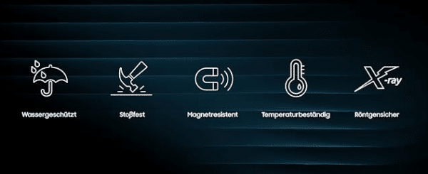 Für diejenigen unter euch, die Wert auf Zuverlässigkeit und Sicherheit legen, bietet der Stick mit seinem 5-fachen Schutz genau das Richtige. Er ist wasserdicht, stoßfest, magnetresistent, temperaturbeständig und röntgensicher.