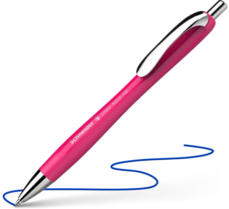 Der Slider Rave XB Kugelschreiber ist ein Publikumsliebling mit seiner ergonomischen Form und dem gummierten Schaft, die entspanntes Schreiben ohne Ermüdung versprechen sollen. Somit also ideal für die Vielschreiber unter euch, ob in der Schule, in der Uni oder im Büro.