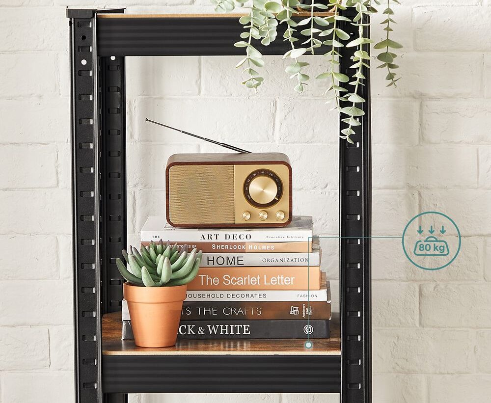 Bei diesem Schwerlastregal könnt ihr euch auf eine beeindruckende Belastbarkeit von bis zu 80 kg pro Regalebene verlassen – insgesamt also bis zu 400kg! Das bietet wohl genug Möglichkeit, um schwere Gegenstände wie Fitnessgeräte oder größere Küchengeräte problemlos zu verstauen. Durch die höhenverstellbaren Ablagen habt ihr zudem die Flexibilität, unterschiedlich große Gegenstände unterzubringen, was den Alltag deutlich erleichtert.