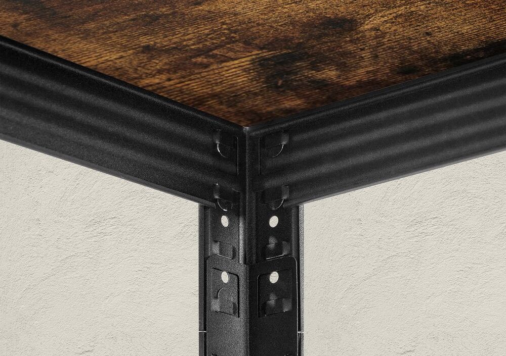 Das Design ist nicht nur praktisch, sondern auch ein Hingucker: Durch die Kombination aus einem mattschwarzen Stahlgestell und vintagebraunen Regalböden setzt das Regal eine industriell-geprägte und absolut zeitlose Note in jedem Raum – selbst im Keller. Außerdem bietet es die Möglichkeit zur Aufteilung in zwei kleinere Einheiten, womit ihr es auch durchaus vielseitig im Wohn-, Arbeitsbereich oder auf dem Balkon einsetzen könnt.