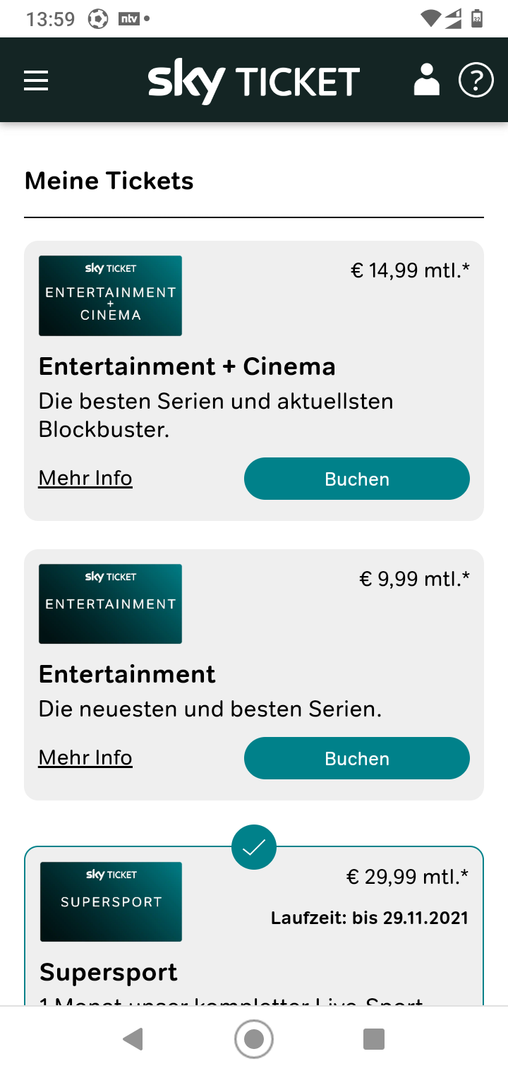 Das Abo von Sky Ticket ist monatlich kündbar, ihr tappt also in keine Kostenfalle. Wenn ihr ein Paket nicht weiterführen wollt, solltet ihr aber rechtzeitig kündigen, und zwar bis zum letzten Tag der Laufzeit.