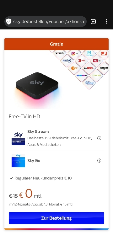 compi45 (Gast) 04.03.2026, 18:04Kann das Angebot weder per Handy nicht per Laptop abschließen. Versuch es seit gestern und nichts geht. Der Abschluss auf der Sky Seite würd nicht beendet! Da fühlt man sich echt verarscht,wenn sowas angeboten wird,und es nicht abgeschlossen werden kann!