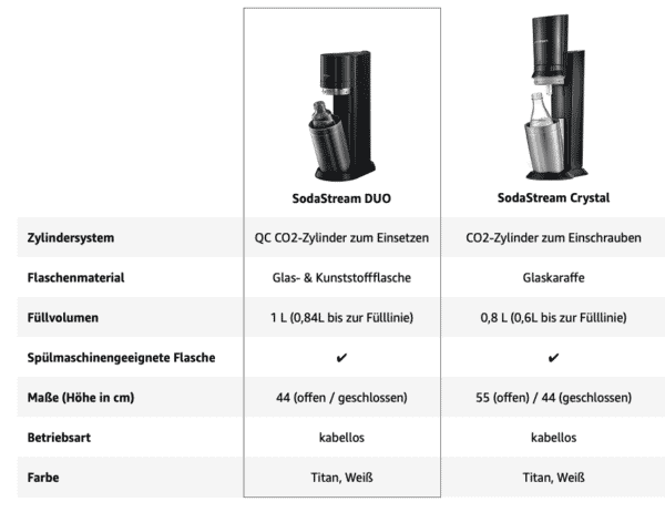 Wer ein Fan von Glas-Karaffen ist, kommt hier genauso auf seine Kosten wie ein Fan von Plastik-Karaffen, die sich ja besser für unterwegs eignen. Bei Amazon bekommt der DUO SodaStream Sprudler 4,5 Sterne von bisher über 5.000 Kunden.