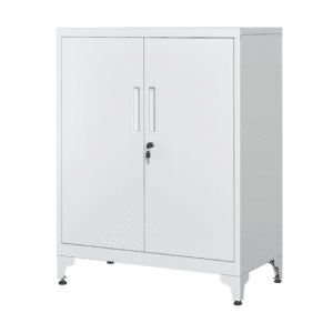 Hergestellt aus pulverbeschichtetem, rostresistentem Stahl, verspricht er Langlebigkeit und Standhaftigkeit. Die wasserresistente Oberfläche erleichtert die Reinigung und hilft dabei, dass der Schrank lange gut aussieht.