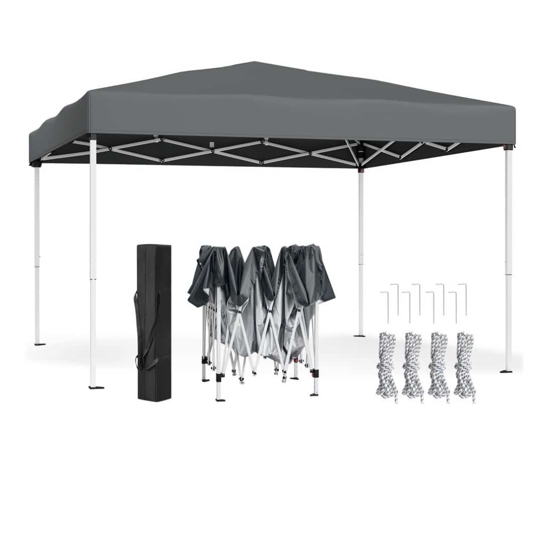 Der Aufbau gelingt euch durch das clevere Faltsystem in kürzester Zeit und ohne großes Werkzeug-Chaos. Mit den beiliegenden Erdankern und Seilen könnt ihr das Zelt sicher im Boden verankern, damit es auch bei einer leichten Brise fest an seinem Platz bleibt. Die robusten Stahlrohre sorgen dabei für die nötige Langlebigkeit, damit ihr viele Sommer Freude an dem Teil habt.