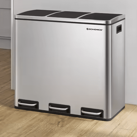 Mülltrennung leicht gemacht! Mit dem SONGMICS Mülltrennsystem mit Fußpedal wird das Recycling in deinem Zuhause einfacher und hygienischer. Der schicke 54-Liter-Mülleimer kommt mit drei separaten Inneneimern, sodass du Restmüll, Bioabfall & Co. sauber trennen kannst – und das alles, ohne den Eimer mit der Hand berühren zu müssen!