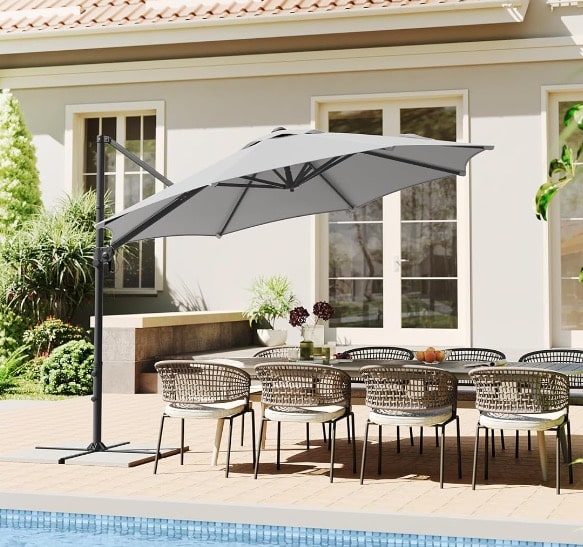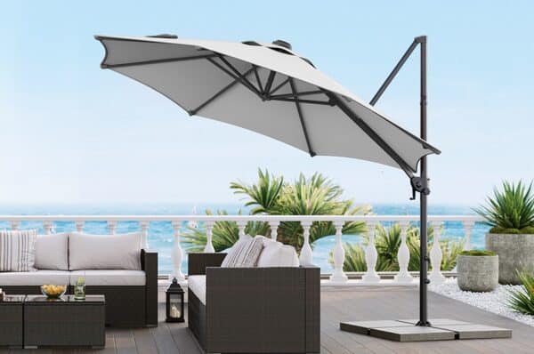 Von Songmics gibt es passend zum Wetter günstig einen Sonnenschirm: Mit 300cm Durchmesser bekommt ihr einen grauen Schirm für nur 97,99€ inkl. Versand. Der Schirm hat einen Sonnenschutz von UPF 50+, ist 360° drehbar, der Neigungswinkel ist stufenlos verstellbar und er hat eine Kurbel!