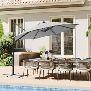 Mit seiner 360° drehbaren und stufenlos neigbaren Funktion kann man den Terrassenschirm mithilfe des Pedals leicht drehen und das Schirmtuch zwischen 0 und 60° neigen, um zu jeder Tageszeit maximalen Schatten zu erhalten.