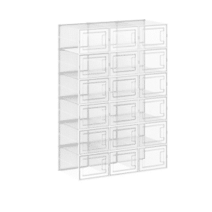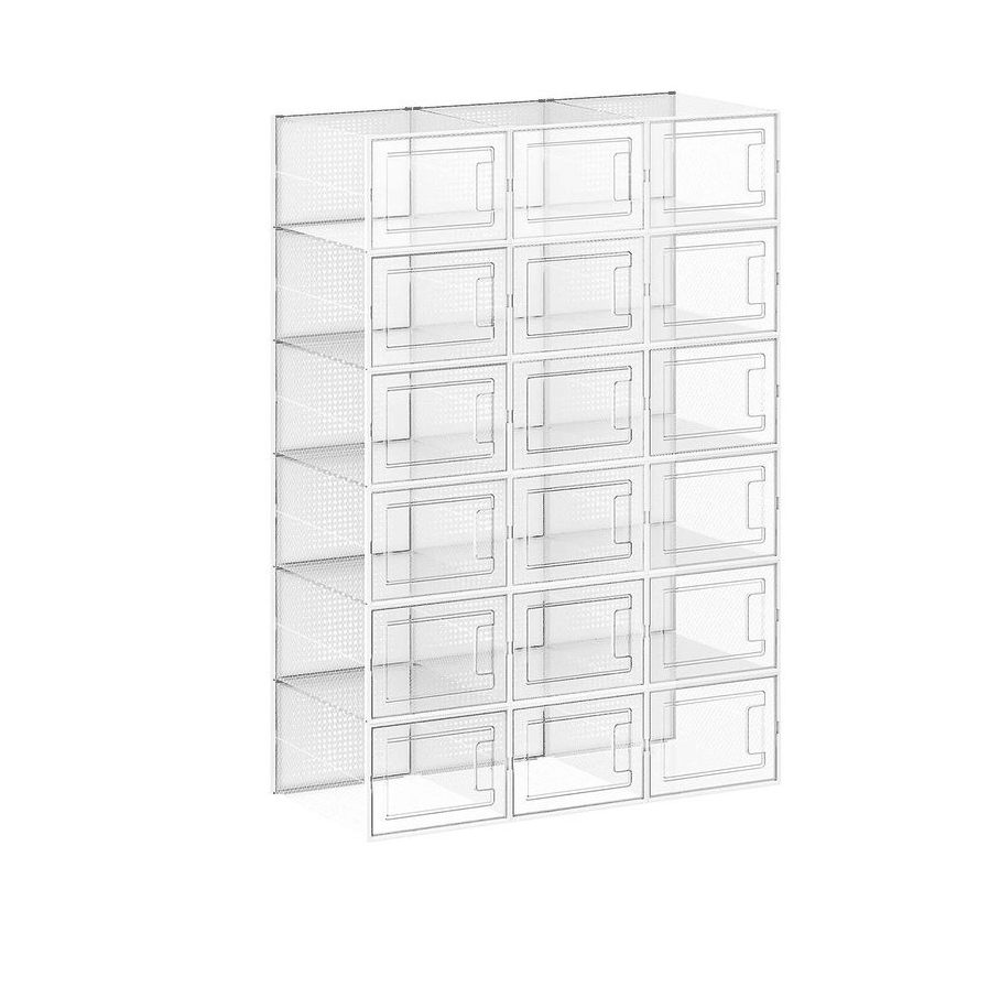 Mit den 18 transparenten Schuhboxen bietet sich euch eine clevere Möglichkeit, eure Schuhe übersichtlich und ordentlich zu verstauen. Der transparente Korpus und die dazugehörige Tür erleichtern es euch, sofort zu erkennen, welches Paar wo liegt.