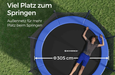 - SONGMICS Trampolin mit Sicherheitsnetz für 155,99€ (PVG: 174,49€)