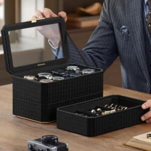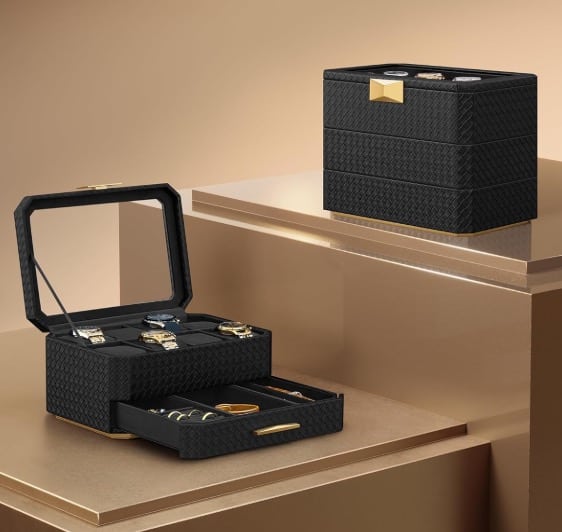Für alle Uhren- und Schmuck-Liebhaber, die ihre Lieblingsstücke stilvoll und sicher aufbewahren möchten: Die Uhrenbox JWB021B01 aus der SONGMICS HOME RONNE Kollektion bietet genügend Platz und einen ansprechenden Look!