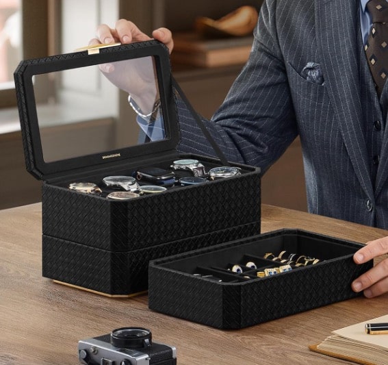 Songmics Uhrenbox JWB017B01 ⌚ für Uhren, Schmuck & mehr