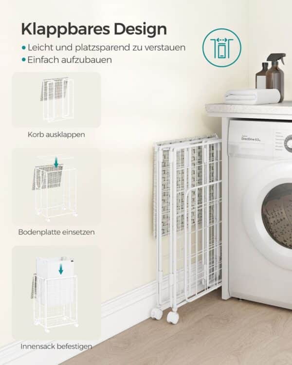 🧺SONGMICS Wäschesammler mit Rollen und Wäschekorb