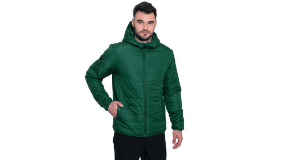Funktionalität steht bei dieser Jacke ebenfalls im Vordergrund. Der Stehkragen mit integrierter Kapuze schützt vor Wind und Wetter, und der durchgehende Reißverschluss mit Kinnschutz verhindert Hautreizungen. Die zusätzliche innenliegende Reißverschluss-Blende verbessert die Isolierung.