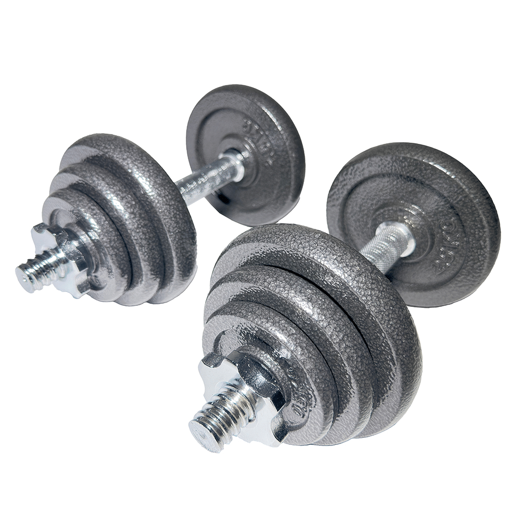 Das Set kommt mit 4×2,5kg, 4×1,25kg und 4×0,5kg Hantelscheiben, dazu noch 2 Kurzhantelstangen. Perfekt, um Bizeps, Trizeps, Rücken, Brust und Schultern zu stählen – egal, ob du Einsteiger oder Fortgeschrittener bist.