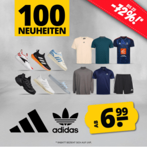 Bei SportSpar gibt’s den Adidas Sale mit vielen unterschiedlichen Schnäppchen. Hier findet Ihr unter den Highlights z.B. Schuhe, Trainingshosen, Shirts und mehr. Zusätzlich könnt ihr euch ab einem Bestellwert von 60€ noch den 5€-Newsletter Rabatt und kostenfreien Versand sichern. Schaut mal rein:
