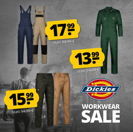 SportSpar haut einen Dickies Sale für euch raus und da gibt es einige interessante Pieces! Beeilt euch, die beliebten Größen sind immer schnell vergriffen. Vor allem Die Arbeitsbekleidung ist sehr hochwertig!