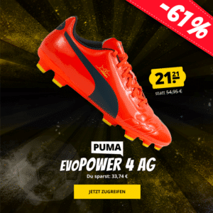 Alle Fußballprofis unter euch aufgepasst! Im Onlineshop von SportSpar gibt es neben etlichen guten Sales auch noch einige Fußballschuhe von Puma zu Top-Preisen. Zusätzlich könnt ihr euch ab einem Bestellwert von 60€ noch den 5€ Rabatt aus dem Newsletter sichern. Besonders erwähnenswert finde ich die evoPOWER 4 AG Herren Fußballschuhe, die es dort derzeit für gerade mal 21,21€ zu haben gibt.
