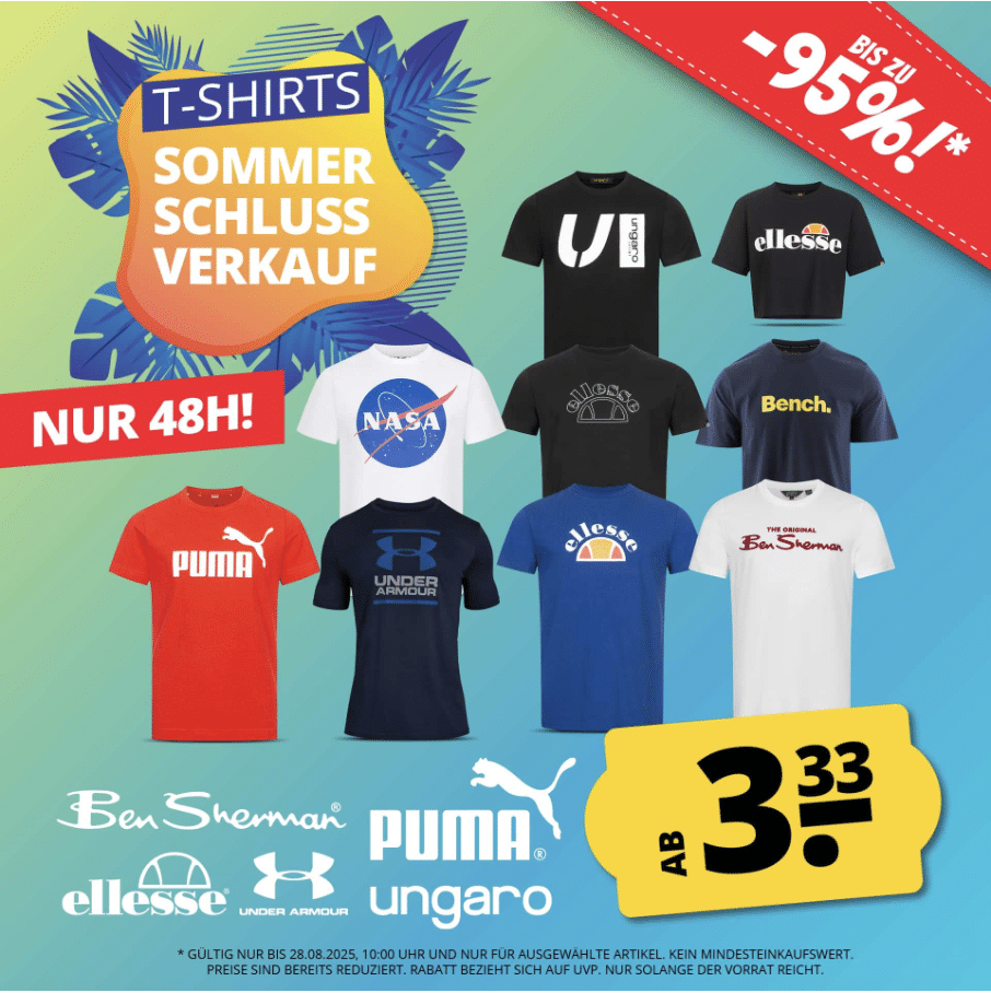 SportSpar Sommer-Sale: T-Shirts ab 3,33€ 👕