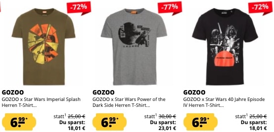 Für den Preisvergleich hab ich mal das Shirt Galactic Empire Stormtrooper GZ-1-STA-373-M genommen. Die Auswahl ist echt ordentlich und 6,99€ pro Shirt sind einfach mal ’ne tolle Ansage! Die Versandkosten liegen bei 3,95€, entfallen aber schon ab einem Bestellwert von nur 50€. Also schaut einfach mal rein und: gönnt euch! Viel Spaß damit 🙂