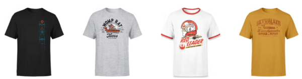 Die Auswahl ist riesig, mit 42 verschiedenen Designs könnt ihr sicher euer Lieblings-Jedis auf einem Shirt finden. Die Preise sind mit 17,99€ bis 21,49€ fair, und falls ihr zwei T-Shirts mit unterschiedlichen Preisen wählt, ist das günstigere umsonst. Nutzt einfach den Code: TEEFD beim Checkout.