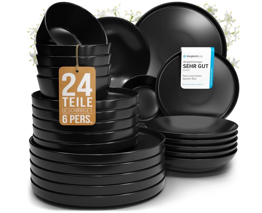 Mit dem Steingut Geschirrset „Manhattan“ für 6 Personen in Matt Schwarz von Amazon könnt ihr euer Küchen-Setup für knapp 80€ inkl. Versand upgraden! Modern, zeitlos und zu einem Preis, der sich sehen lassen kann. So bekommt der Esstisch ein kleines, aber feines Upgrade, na wie wär’s..? 🙂