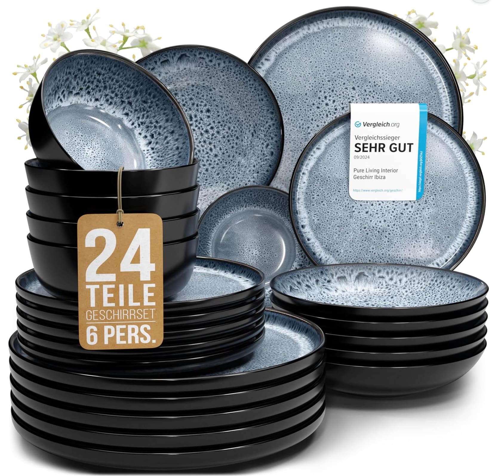 - Steingut Geschirrset Ibiza 24-teilig für 6 Personen für 99,95€ (PVG: 150€)