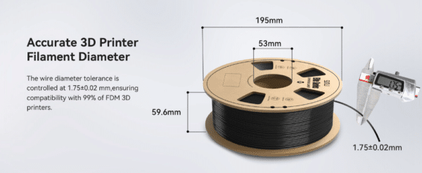 Mit einer Maßhaltigkeit von 1,75 mm und einer Toleranz von nur +/- 0,02 mm, fügt sich dieses Filament nahtlos in die meisten 3D-Drucker ein, die mit diesem Durchmesser arbeiten.