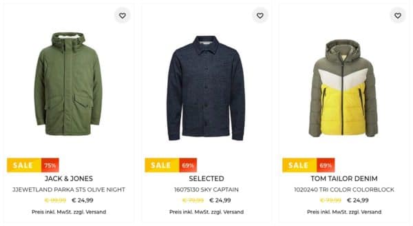 Jetzt haut Tara-M einen raus: Für Herren gibt es einen bunt gemischten Jacken-Sale mit bis zu 75% Rabatt und on top 10% Extra-Rabatt mit dem Code „10offos“. Hier lohnt sich das Reinschauen, denn jetzt ist ja erst mal wieder Winter, hehe – wobei ja auch ein paar luftige Frühlings-Exemplare dabei sind, z.B. von Jack&Jones, Only&Sons uvm…