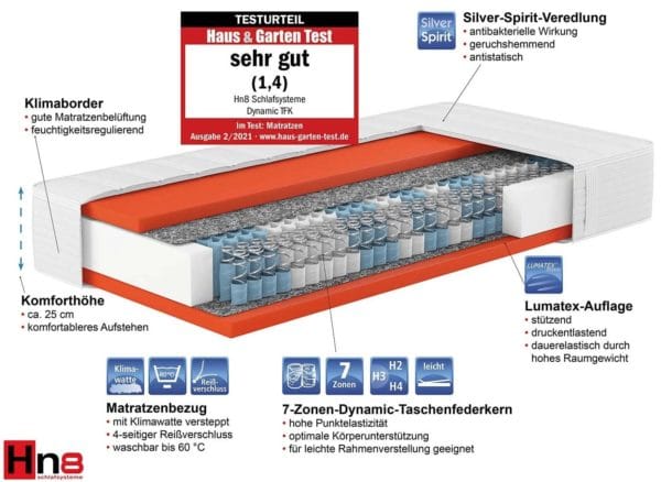 Testsieger 💤 Hn8 7-Zonen Taschenfederkern-Matratze Dynamic ab 149€