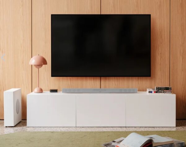 Der beiliegende T 6 Subwoofer ist ein echtes Highlight, denn er ist nicht nur platzsparend, sondern liefert auch einen tiefen und präzisen Kickbass. Ob liegend oder stehend, ihr könnt den Klang des Subwoofers je nach Aufstellung anpassen. Für den echten Surround-Sound sorgt zudem das aktive Rear-Speaker-Paar EFFEKT 2, das ihr bis zu 15 Meter entfernt platzieren könnt – kabellos und flexibel, dank der Wand- oder Standfußmontage.