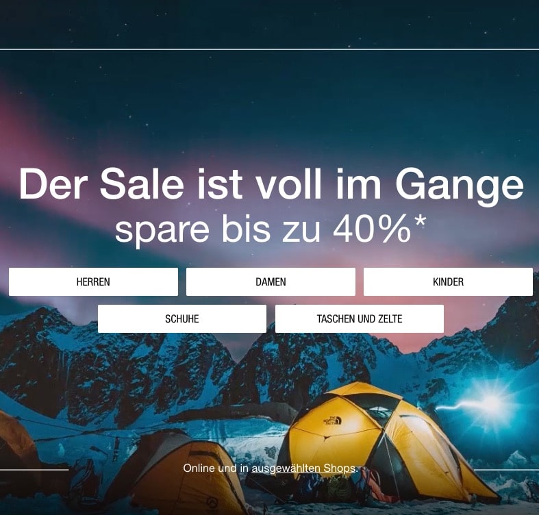 Outdoor-Freunde: The North Face läutet den Salemodus ein und bietet ein umfangreiches Sortiment mit Rabatten von bis zu 40% an! Und: On top gibt es 10% Extra-Rabatt ab 100€ mit (gratis) XPLR-Pass (gilt nur auf euren ersten Einkauf).