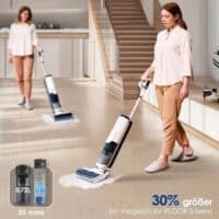 - Besonderheiten: 180° Lay-Flat Design für Reinigung unter Möbeln, 20kPa Saugleistung & Wischen in einem Schritt, Beidseitige Randreinigung bis auf 0,5 cm genau, Selbstreinigung & 5 Min Heißlufttrocknung bei 85 °C, Verbessertes Anti-Tangle Design für Haare & Tierfell