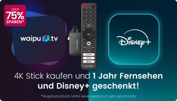 - waipu.tv 4K Stick + 12 Monate waipu.tv Perfect Plus und Disney+ GRATIS!
