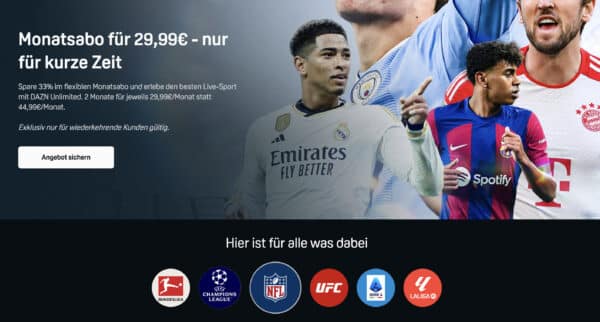 - 2 Monate DAZN für 29,99€ mtl. (statt 44,99€)