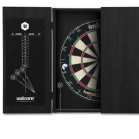 Das Unicorn Home Dart Center Maestro könnte das neue Highlight in eurem Spielzimmer sein. Es ist weit mehr als nur ein Dartboard – dieses Set integriert sich durch seinen eleganten schwarzen Holzschrank nahtlos in euer Wohnambiente. Die magnetischen Türen sorgen nicht nur für eine stilvolle Optik, sondern garantieren auch, dass alles sicher verstaut bleibt. Innerhalb der Türen findet ihr praktische Halterungen für die Darts und abwischbare Tafeln, die ihr für die Punktezählung nutzen könnt.